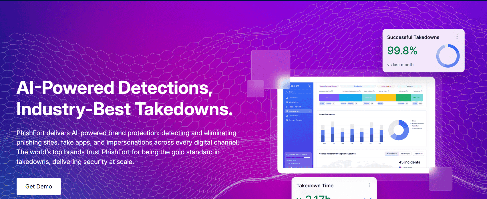 PhishFort offers takedown services focused on fintech, crypto, and other high-risk industries. It specializes in detecting phishing sites, scam mobile apps, and impersonating domains, with streamlined escalation and takedown workflows for fast-moving threats.